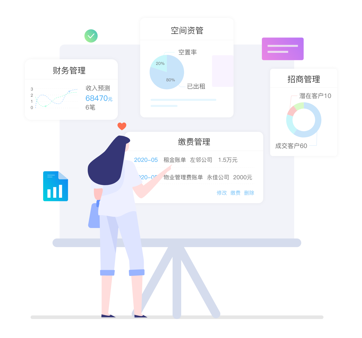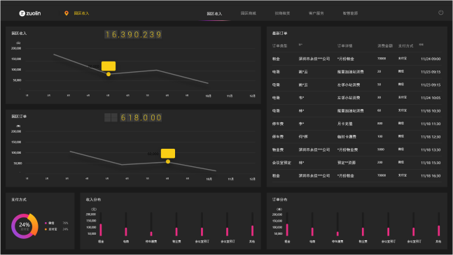 精準盤點,一手掌握各項經營數據租金、停車費、物業(yè)費、訂單分布情況等